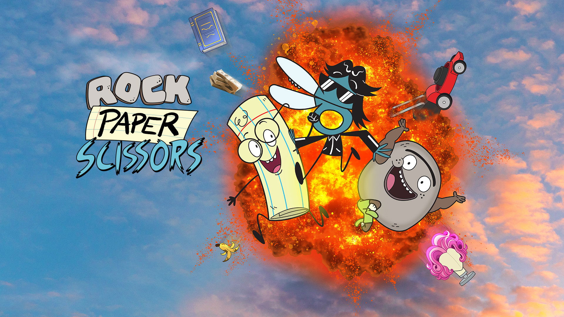 Rock, Paper, and Scissors are best friends and roommates who compete over everything, but it’s (mostly) all love. They each bring something different to the friendship – Rock is the moral compass, Paper is the practical one, and Scissors is the right amount of chaos. Together, they get into the wildest adventures.